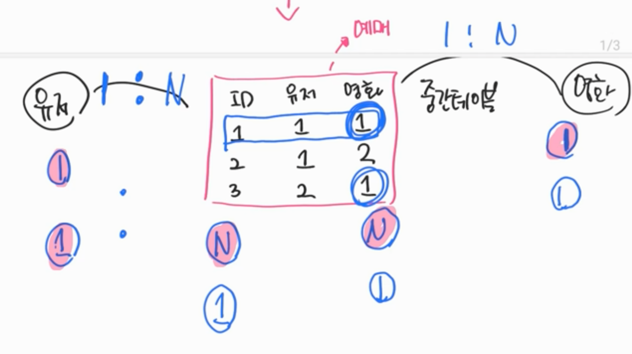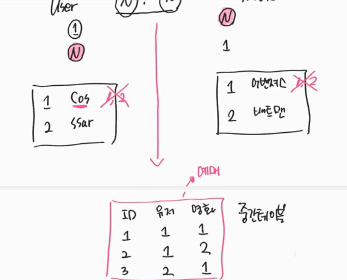 - User와 영화의 관계에서 "예매"라는 중간 테이블을 만들어야 한다.