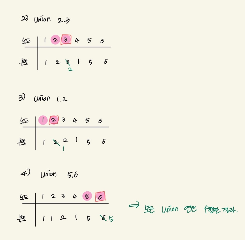 (2) 모든 union 연산을 처리할 때까지 (1) 반복