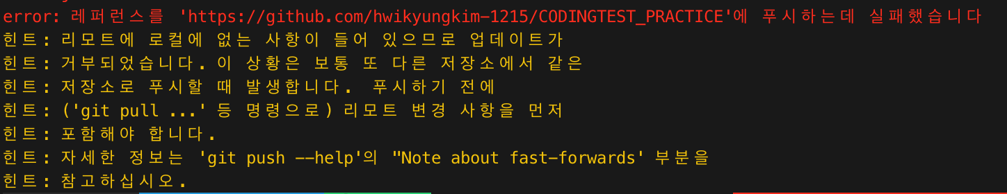 [GitHub 오류] git push 안될 때(리모트에 로컬에 없는 사항이 들어 있으므로 업데이트가 거부되었습니다.) 본문
