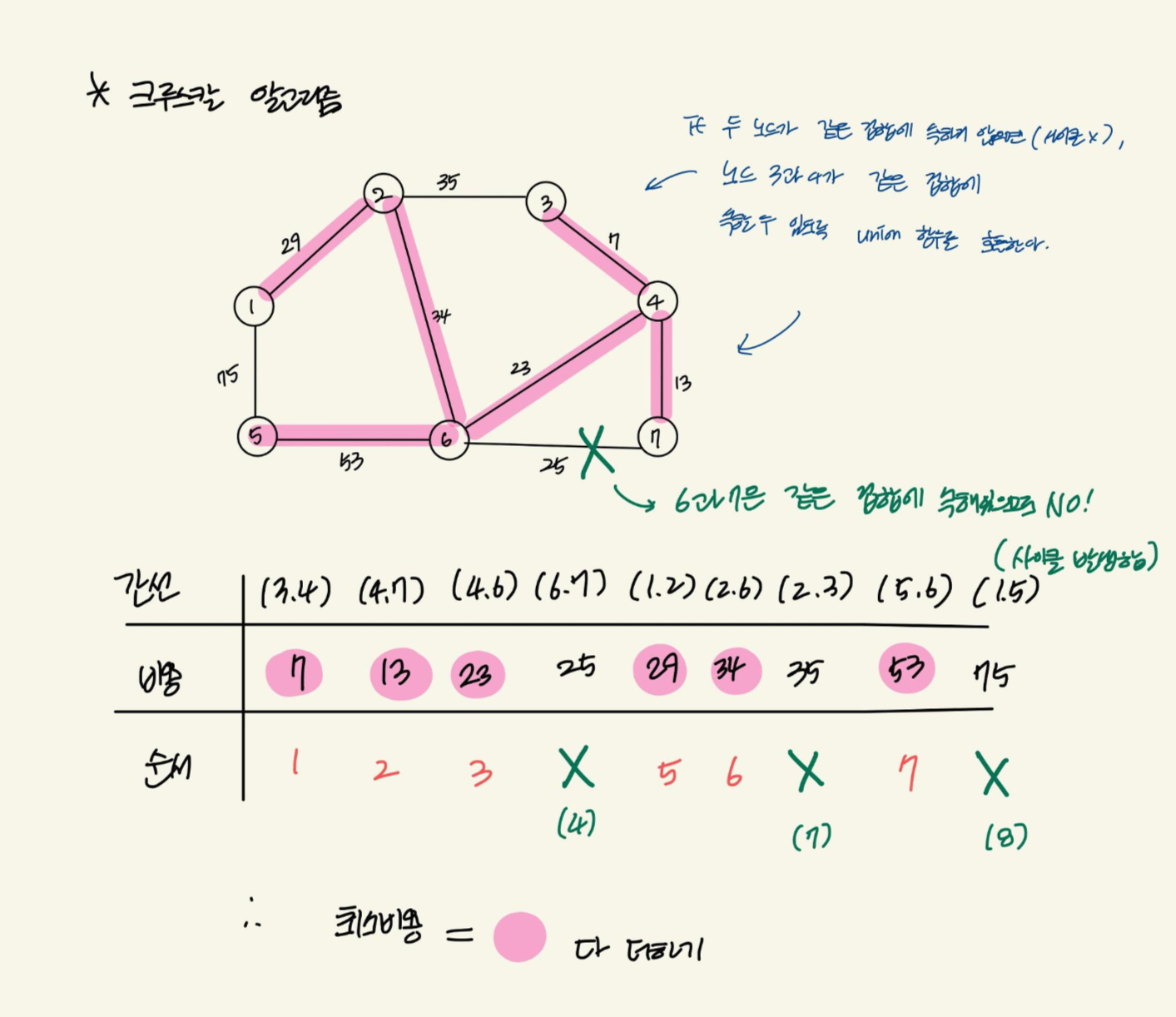 - 대표적인 최소 신장 트리 알고리즘이다.