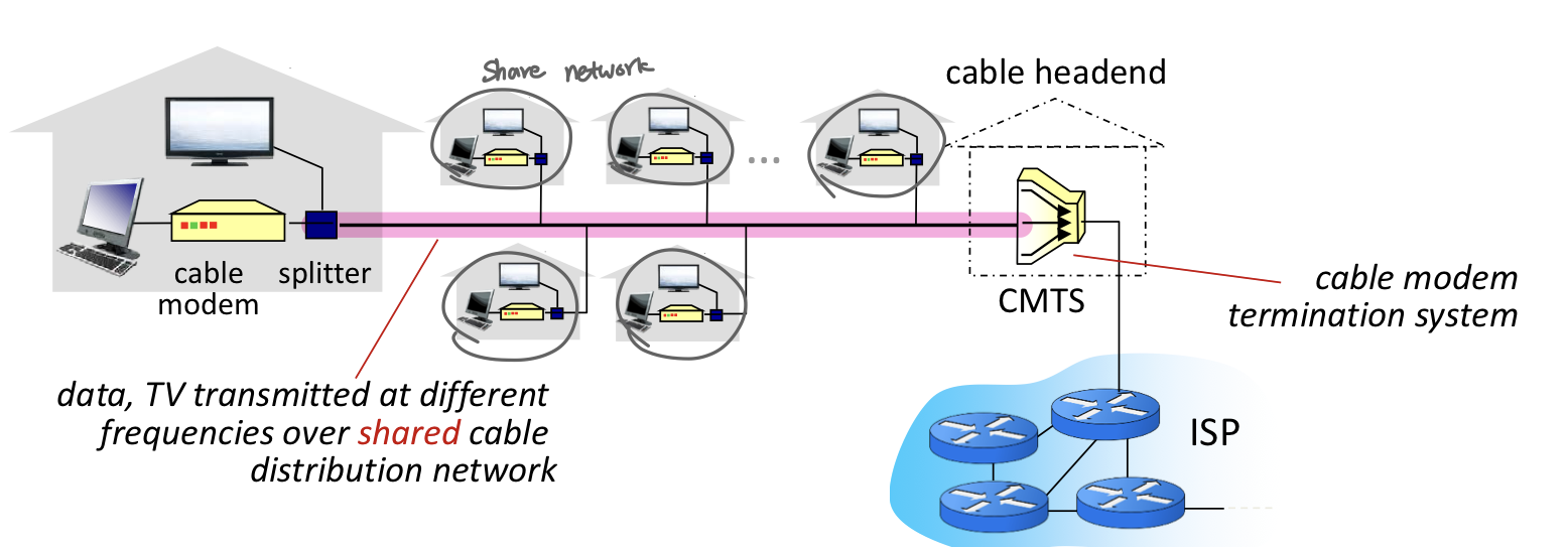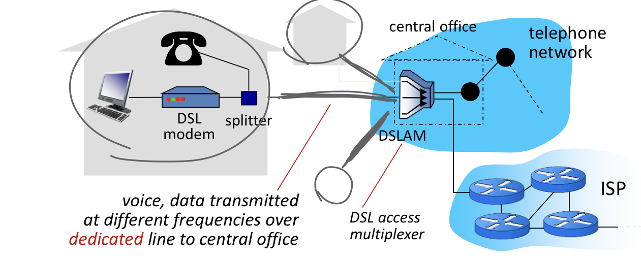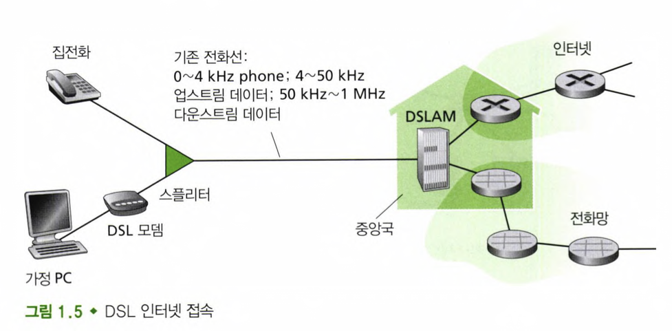 - data over DSL phone line goes to Internet DSL 전화선을 통한 데이터 -> 인터넷으로 전송