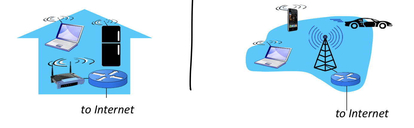 - shared wireless access network connects end system to router