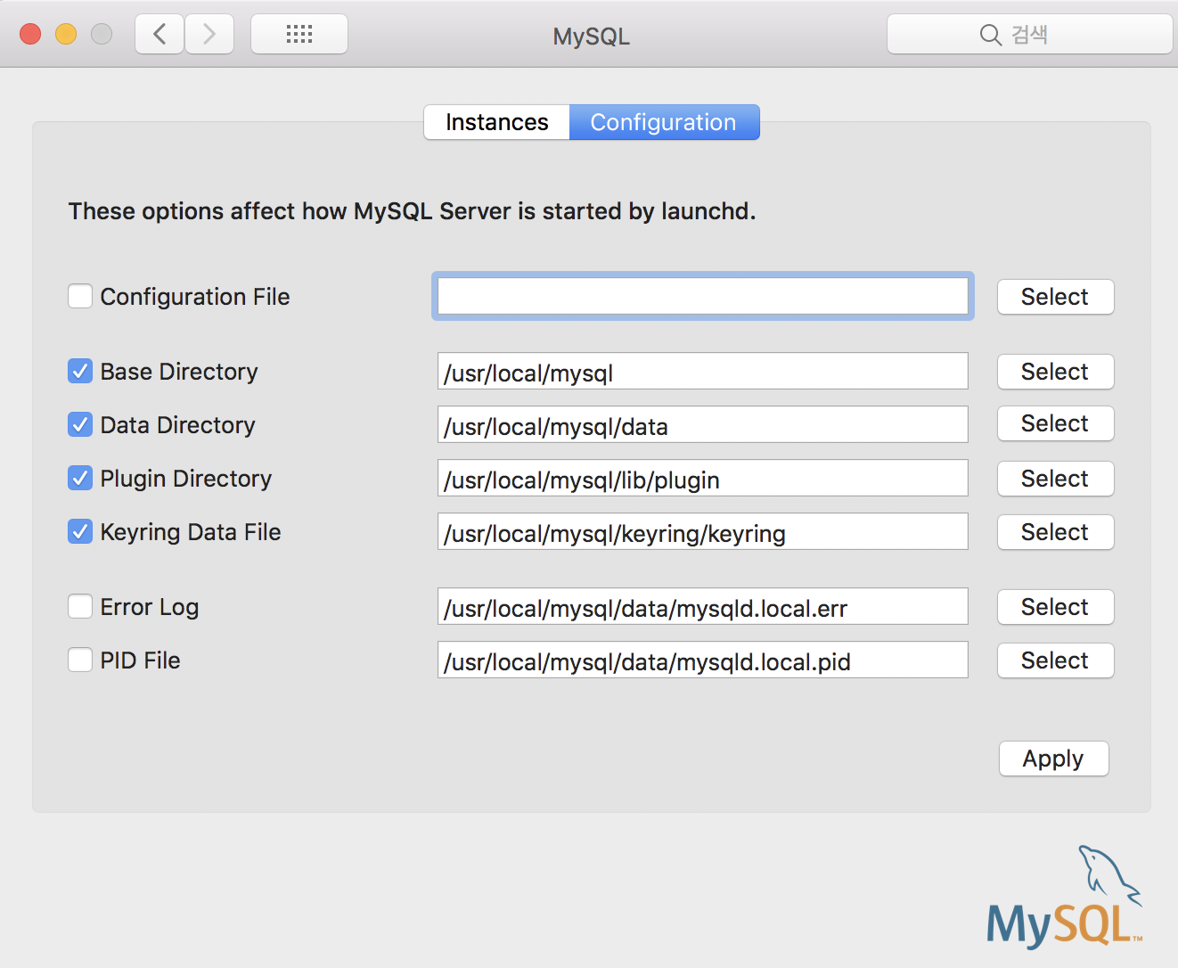 2. 시스템환경설정>mysql>Configuration에서
